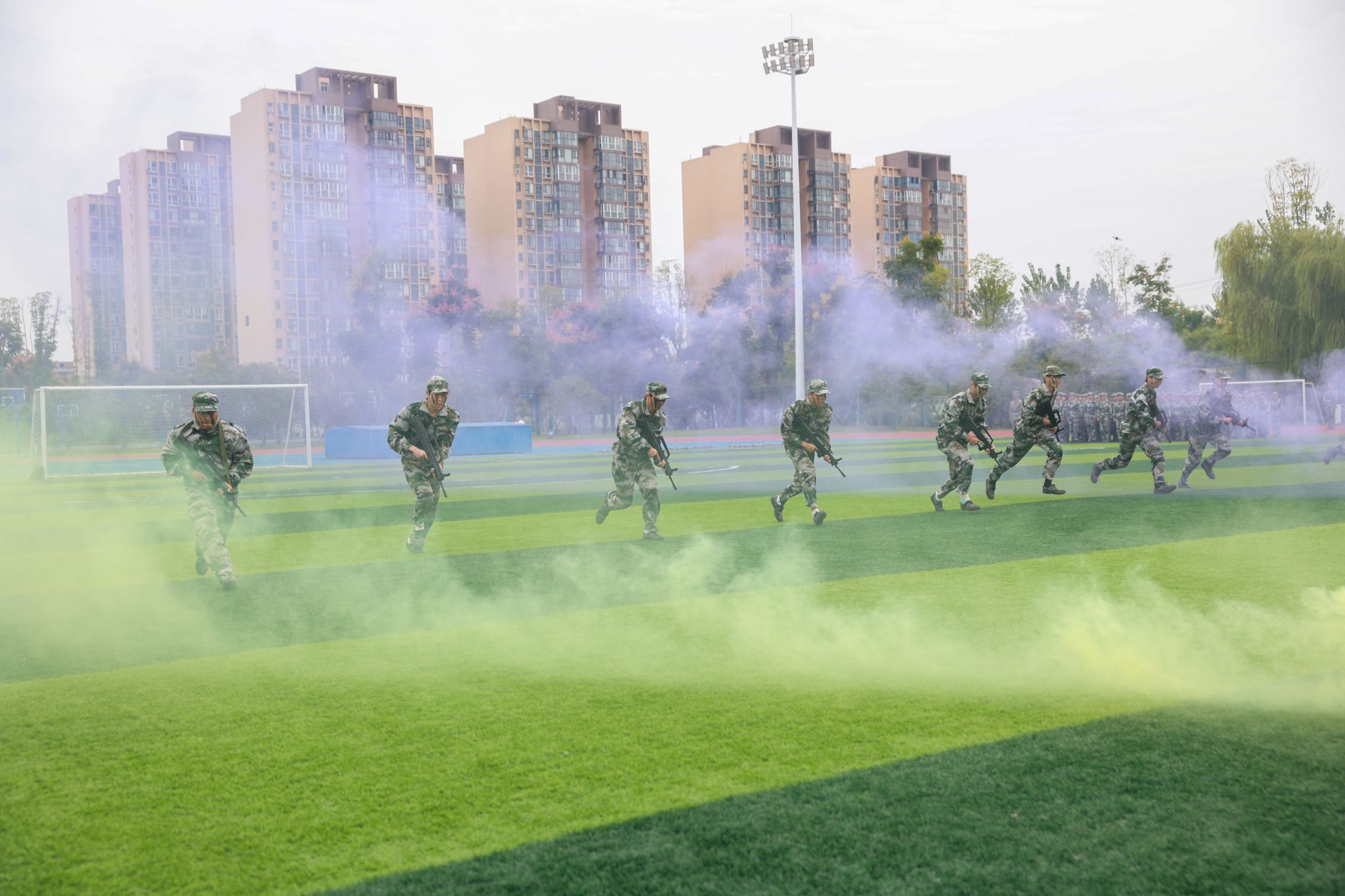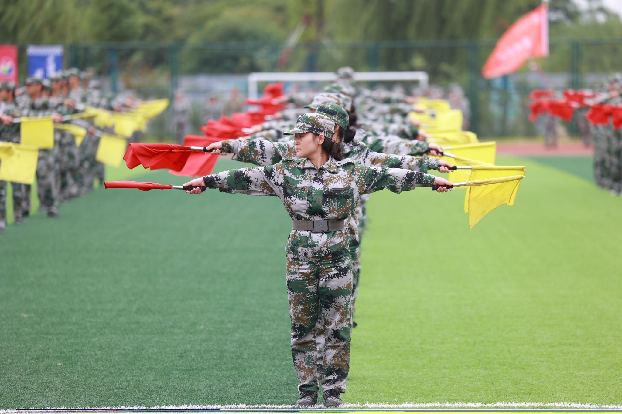 随后进行的军事课目表演更是精彩纷呈。战术方阵模拟实战、擒敌拳刚劲有力、女子匕首操飒爽凌厉、应激棍术虎虎生风、旗语表演整齐划一,每一个课目都凝聚着同学们的汗水与努力,展现出过硬的军事素养和良好的团队协作能力。