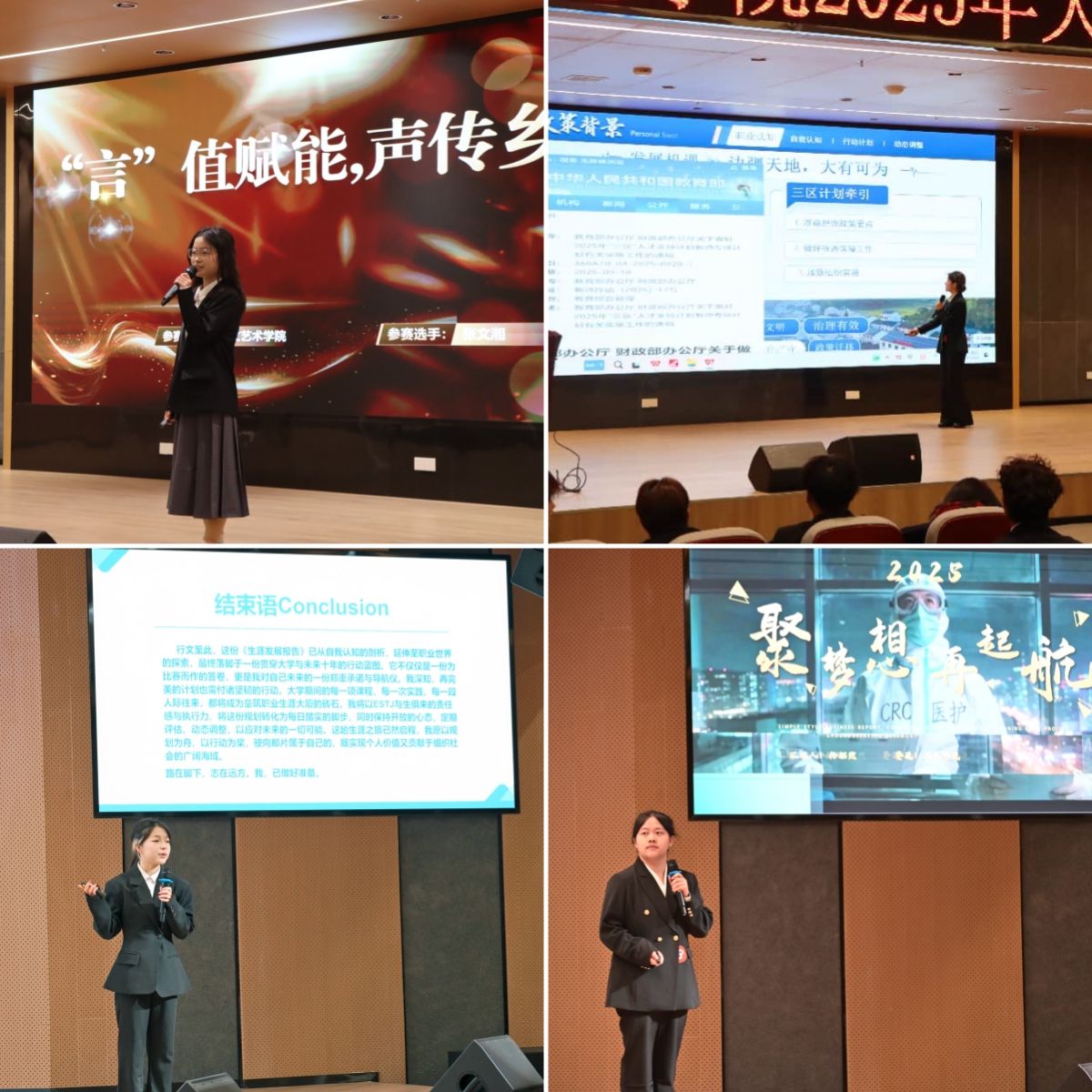 经过激烈角逐,大赛最终评选出一等奖5名、二等奖8名、三等奖若干名。评委组长在总结讲话中指出,本次大赛不仅是一场竞技比拼,更是一堂生动鲜活的职业生涯教育课,希望同学们以赛促学、以思促行,将职业规划蓝图转化为实际行动,在未来的求学与职业道路上脚踏实地、行稳致远。