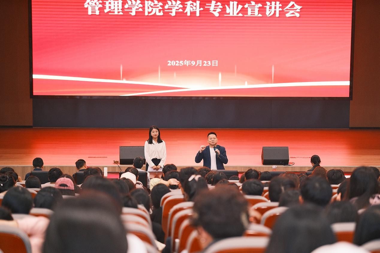 2025年9月23日下午,管理学院2025级新生入院仪式暨学科专业宣讲会在图书馆第一学术报告厅隆重举行。管理学院院长文卫、各专业负责人、教师代表及全体2025级新生共同参与了此次活动。仪式由钟宏、张奇两位老师主持。