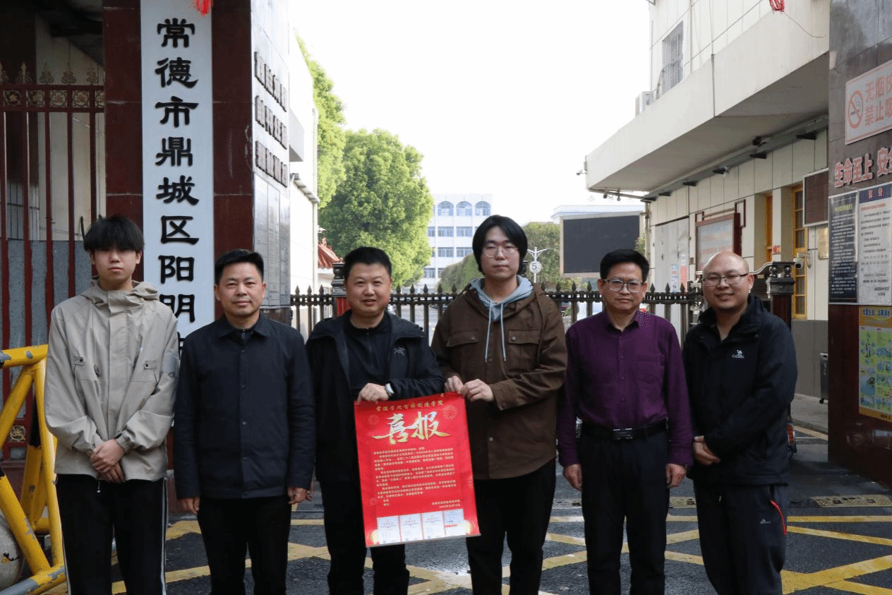 历经校级选拔的严格筛选、省级区域赛的激烈角逐,学院多名学子凭借扎实的专业功底与出色的应变能力,成功突围晋级多项国家级学科竞赛决赛,并在全国赛场上斩获累累佳绩。为了向中学母校传递这份荣誉,感恩母校多年的育人付出,学院特意精心设计自制获奖喜报,选取张泽宇、文筠昊两位同学就读的常德本地两所中学,由学院师生亲自上门送喜,与中学师生共话成长历程,共享荣誉喜悦。