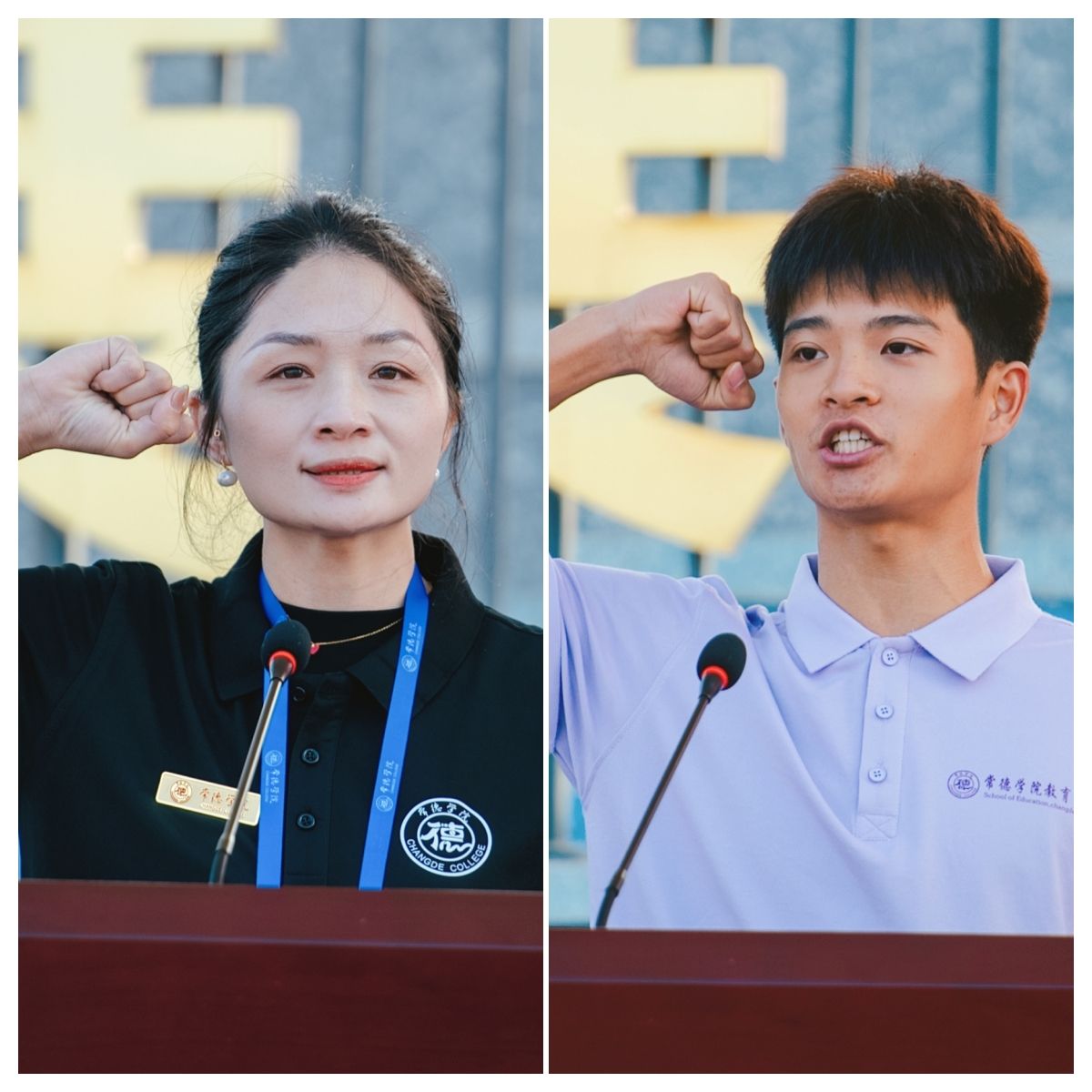 在宣誓环节,裁判员代表雷小亚老师和运动员代表夏巧荻同学依次上台宣誓,承诺严格遵守比赛规则,发扬体育精神,确保赛事公平、公正、顺利进行。
