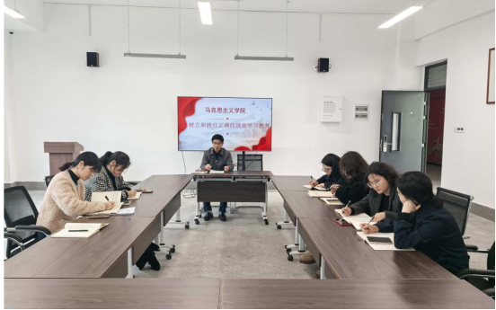 2026年3月31日下午,马克思主义学院在精进楼208会议室召开树立和践行正确政绩观学习教育研讨会,会议由学院院长李故新主持,学院教师严丽丽、何柳、谢天添、王懿智、张雯霞、张焕祺、李雨青参加学习。