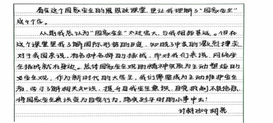 师生反响热烈,学习成效显著。此次“思政大课”在师生中引发强烈反响。学生们纷纷表示,通过课程学习,对总体国家安全观的内涵和实践要求有了更深刻的认识。财管2505班的李凯翔表示:“这堂课让我意识到,国家安全与我们每个人息息相关。作为新时代青年,我们要把个人理想融入国家安全的需要,主动维护国家安全。”学习结束后的院讨论会上,李故新院长指出,此次‘思政大课’是一堂生动的爱国主义教育课,学生们能够积极参与讨论,展现了强烈的责任感和使命感,并嘱咐老师们在今后的课堂教学中也能延续国家安全观的思想意识教育。