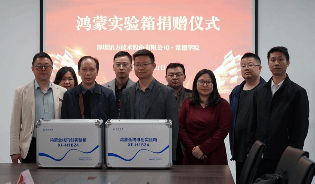 仪式结束后,深圳讯方向常德学院捐赠一批鸿蒙试验箱,为我校鸿蒙相关课程教学、实验实训、学生科创项目提供了坚实的硬件支撑,有效助力实践教学条件升级。