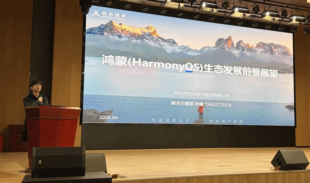 当日下午,深圳讯方技术专家走进校园,面向对鸿蒙技术抱有浓厚兴趣的学生开展鸿蒙生态发展前景主题讲座。专家围绕鸿蒙系统技术架构、产业应用场景、行业人才需求及职业发展路径等内容进行分享,现场互动热烈,进一步激发了学生学习前沿技术、投身鸿蒙生态建设的热情。