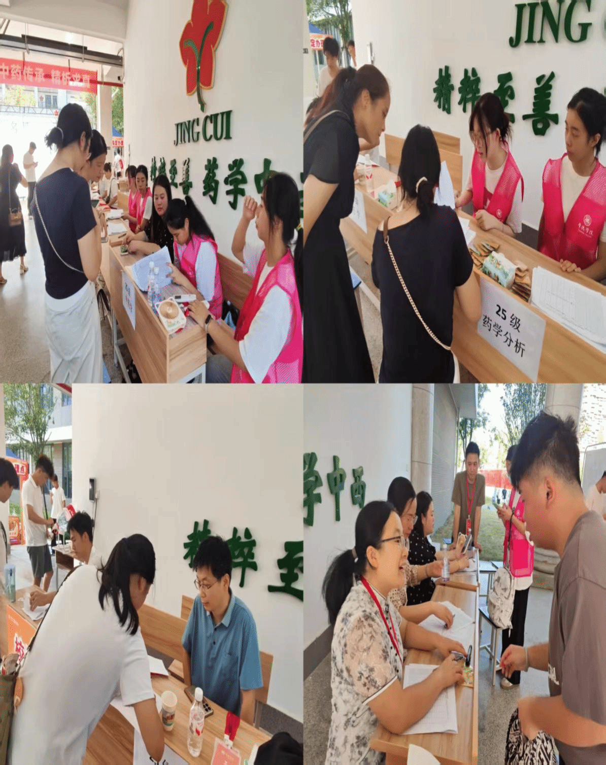 在药学院门口,由老师和学生志愿者组成的接待队伍早已整装待发,他们面带微笑,以最饱满的热情迎接每一位新同学的到来,指引他们报到,搬运行李,让新生感受到家一般的温暖。