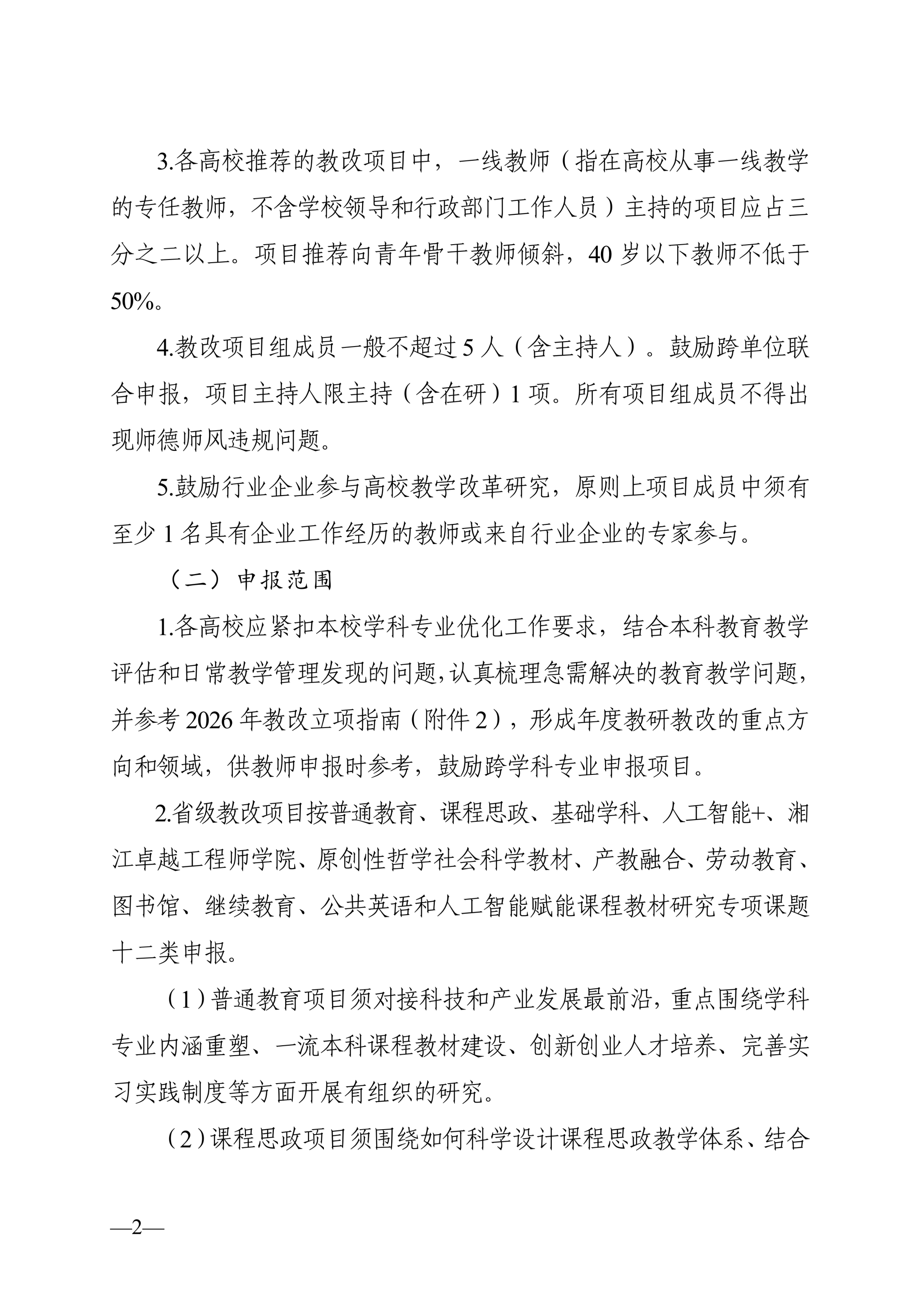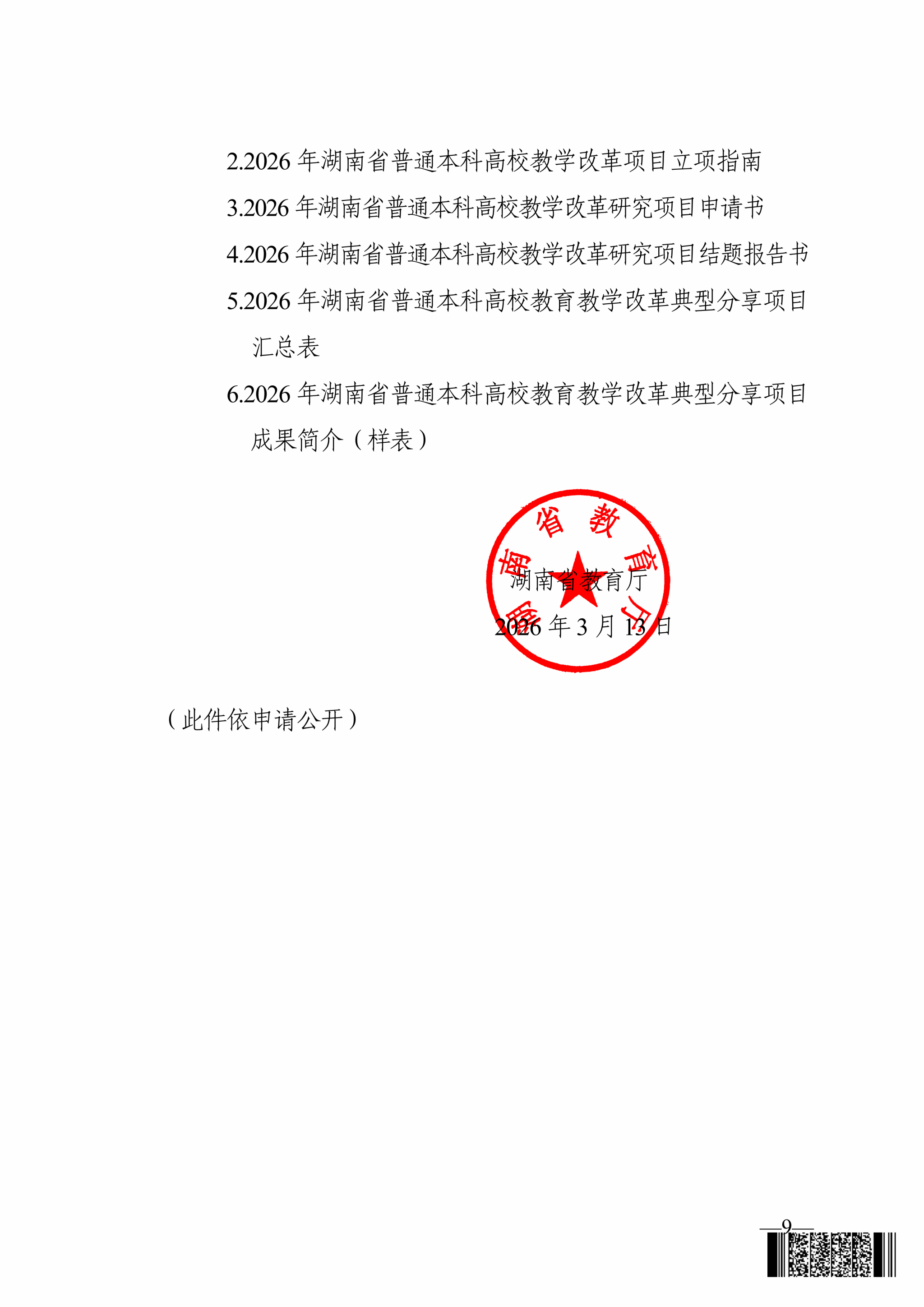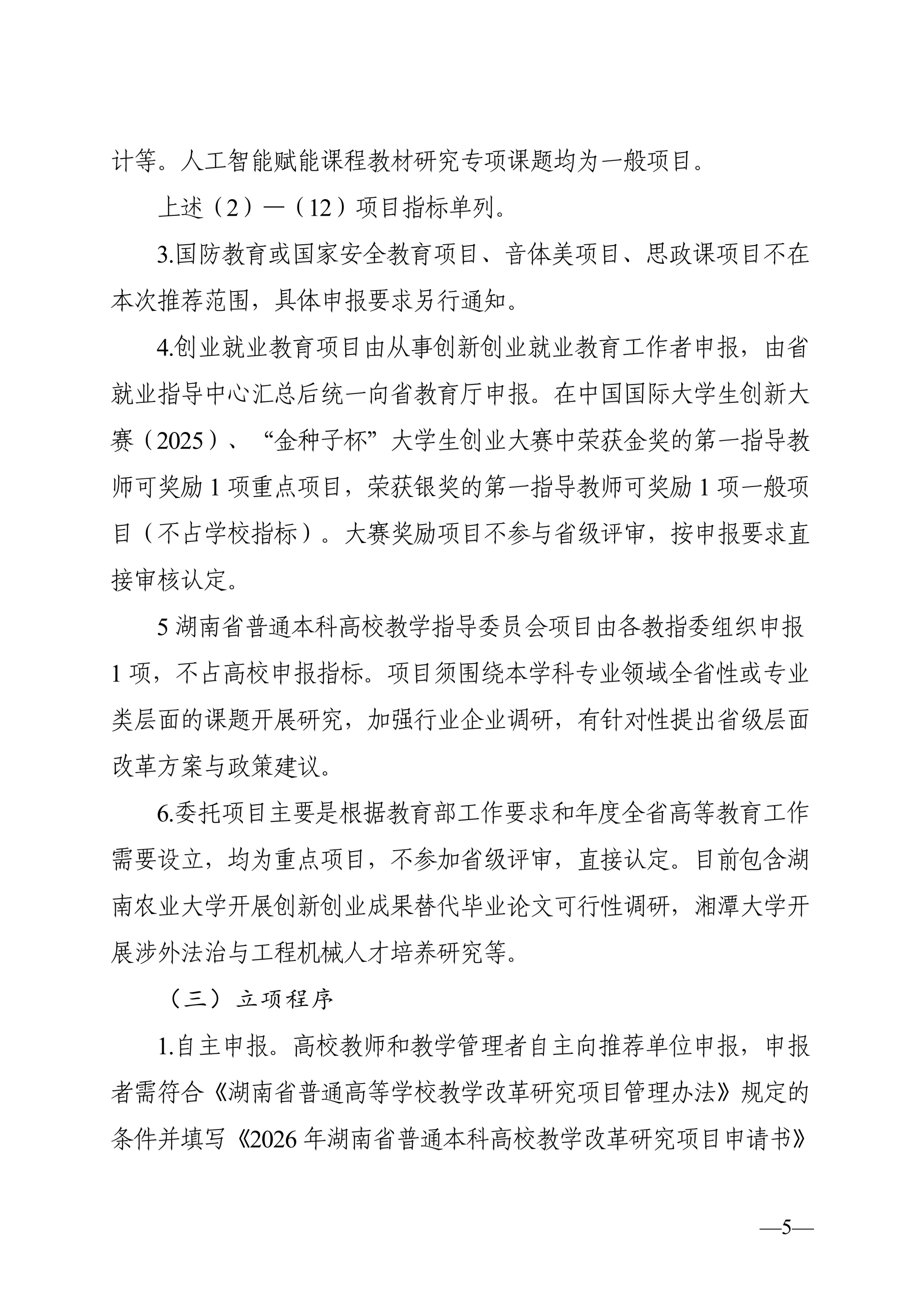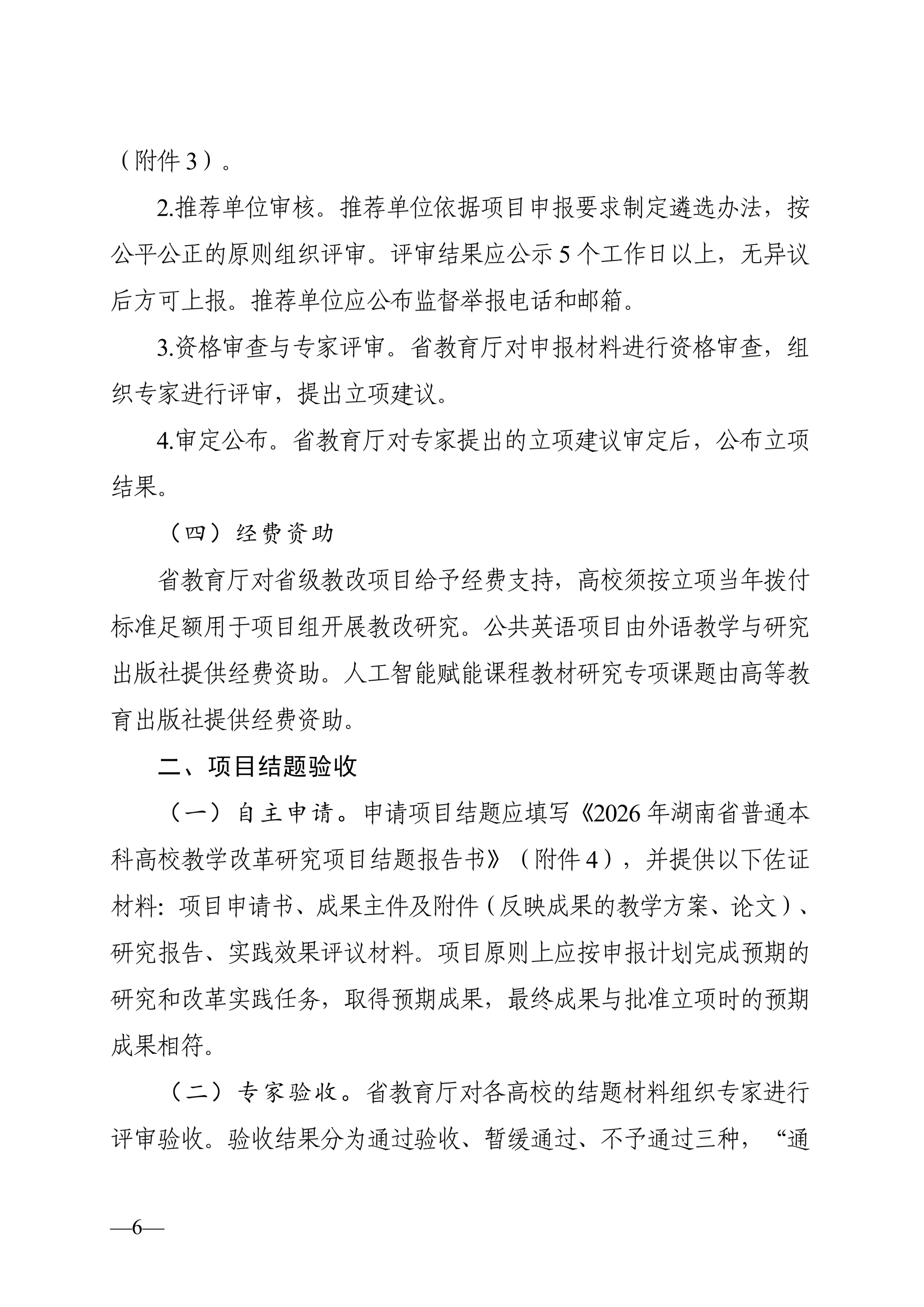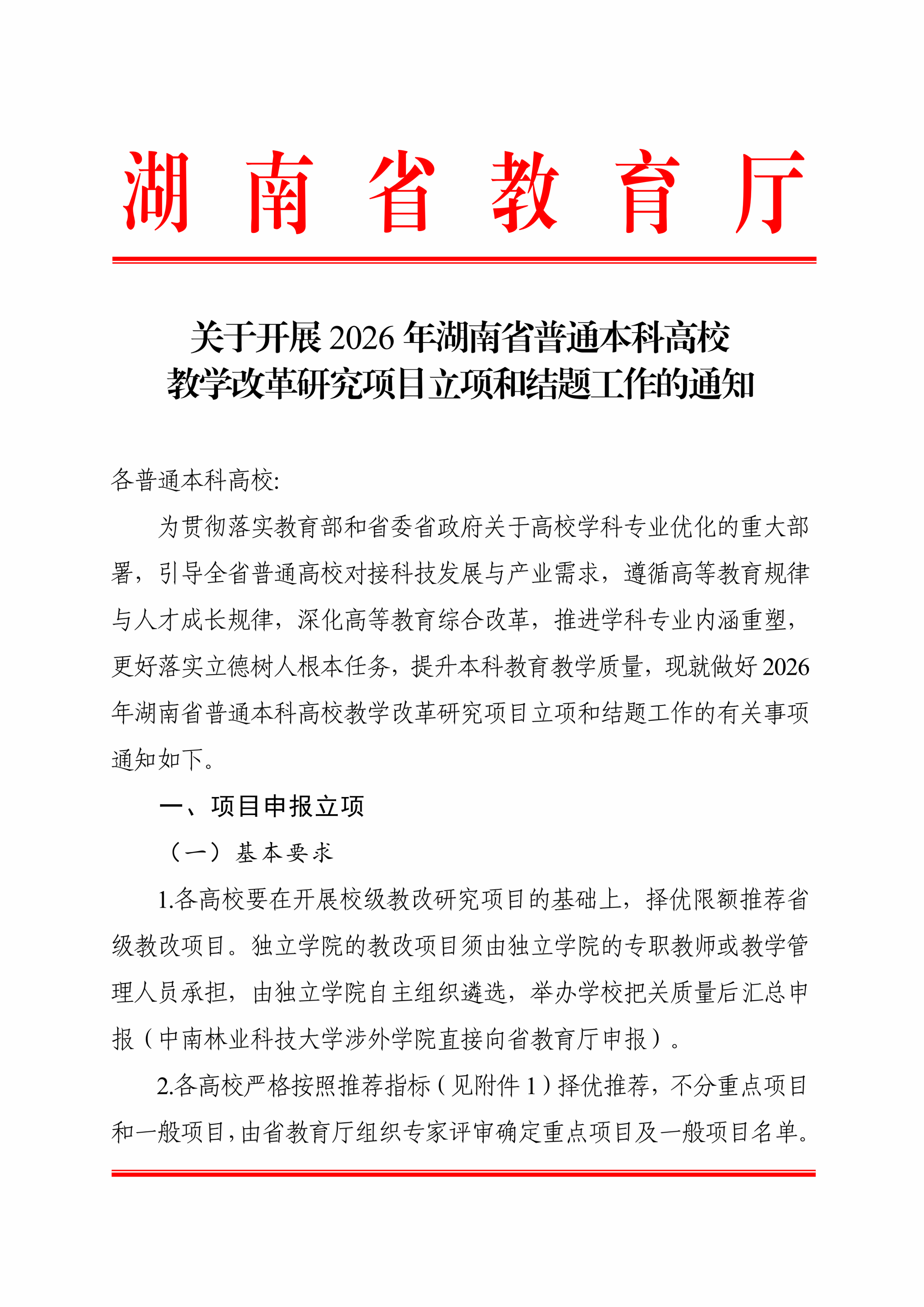 关于开展 2026 年湖南省普通本科高校教学改革研究项目立项和结题工作的通知
